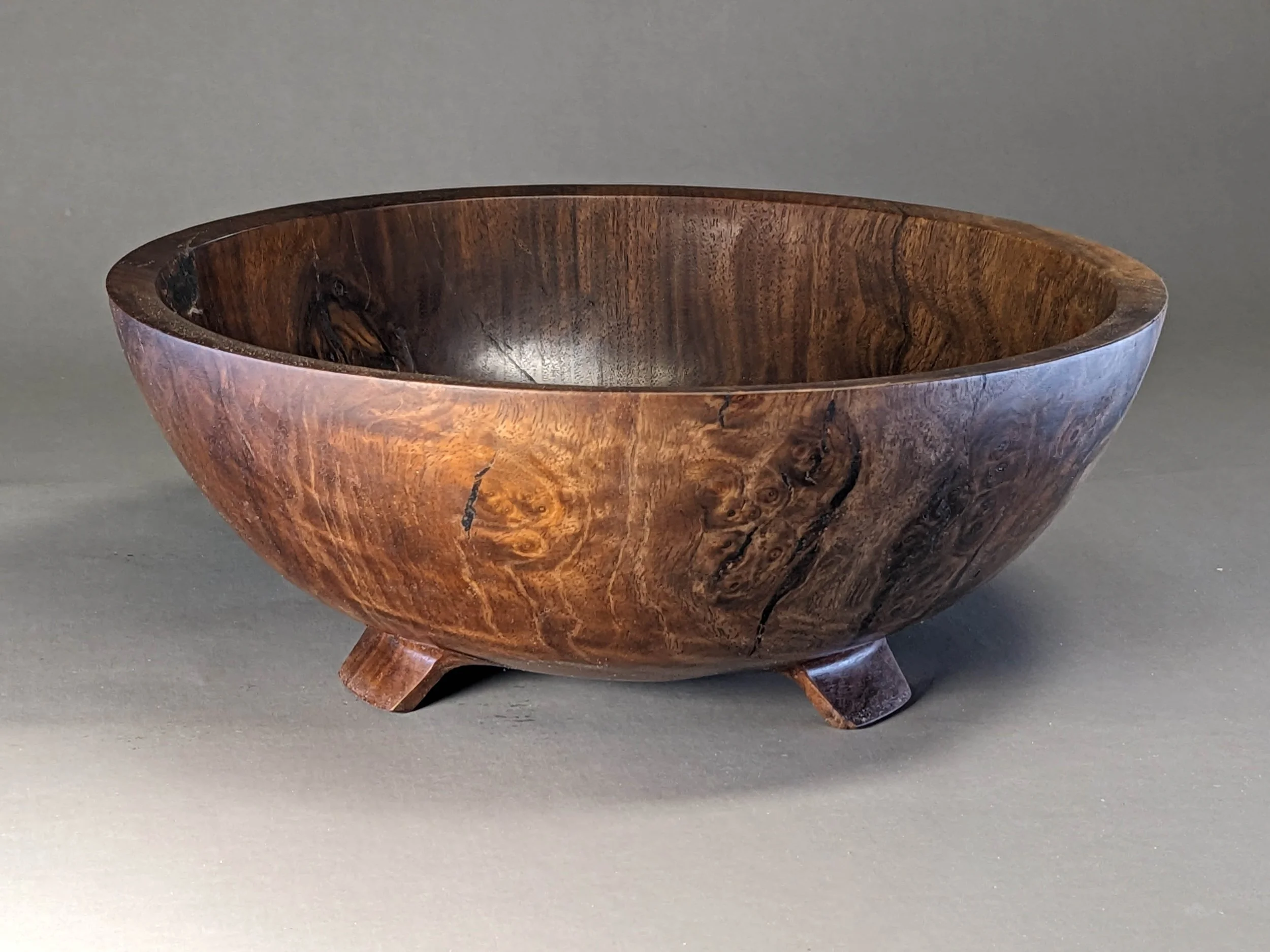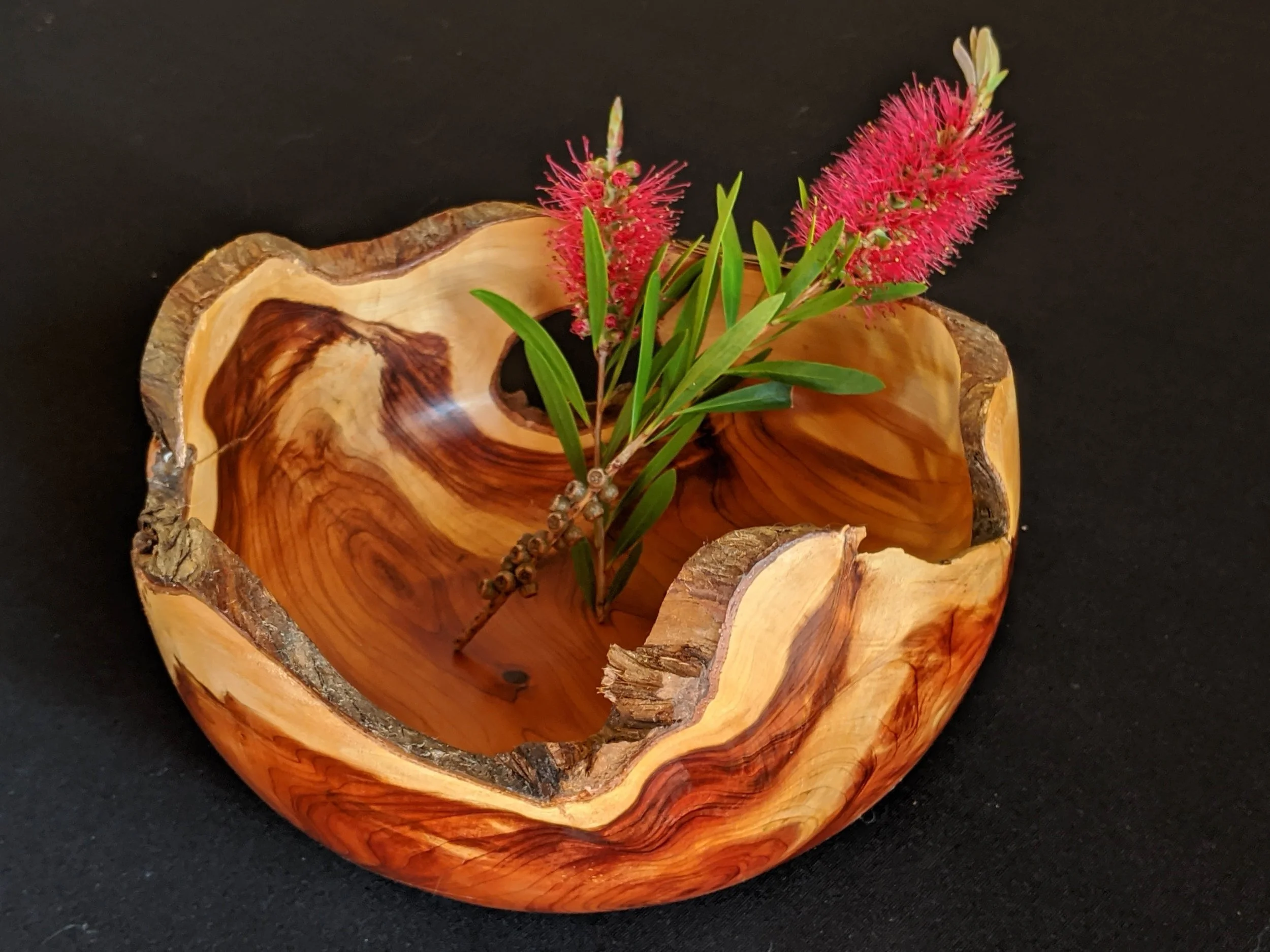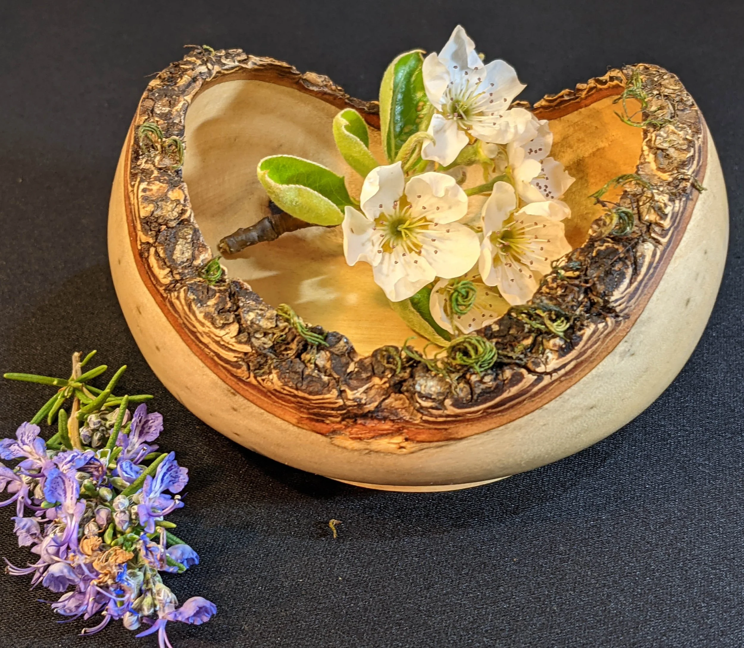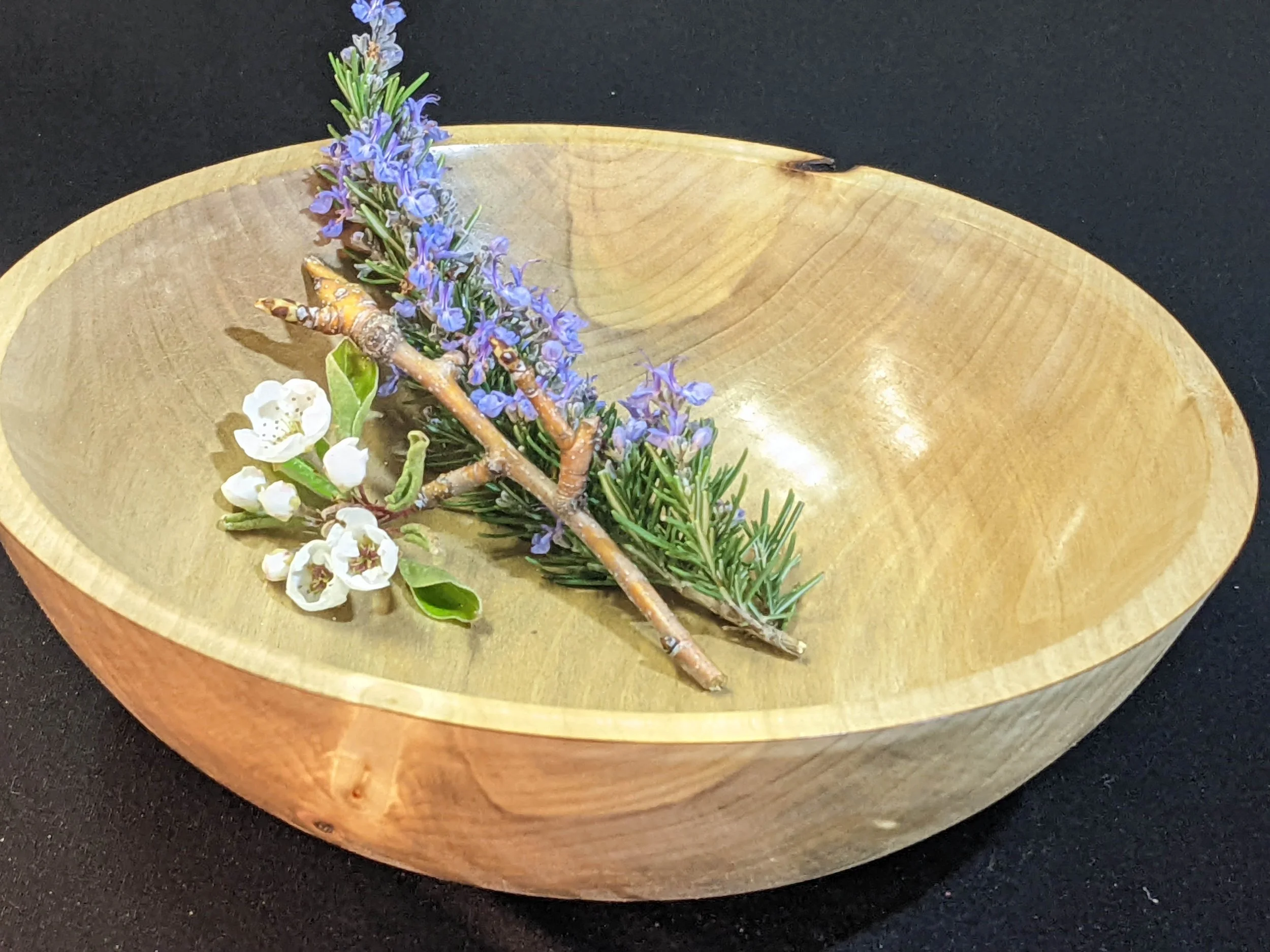Other wood varieties on our property, from which I have created pieces, include Tan Oak (which, despite its common name is not a true Oak), Redwood, California Bay Laurel and various types of Pine. In addition to bowls, I sometimes produce cutting boards, plates and even furniture.