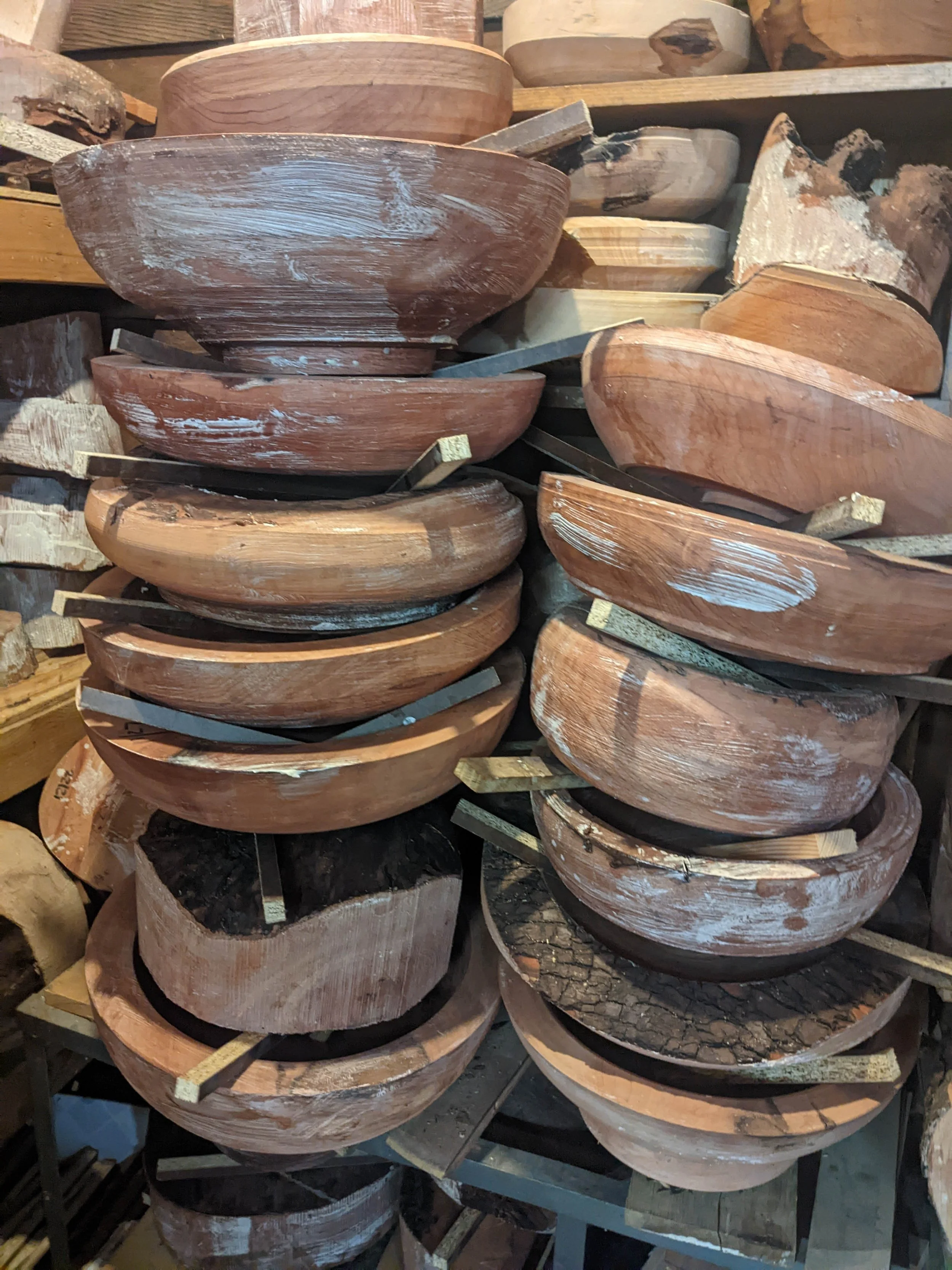 Finally, the wood is ready to be turned into final shape. This can take many iterations, depending on the final goal. The wood will then be sealed and polished, but not before multiple rounds of sanding - starting often with a 150 grid sandpaper, then 220, 300, 400, and for Madrone, it likes to be finished with 600, 800 and sometimes 1200 grid for a perfect shiny finish.